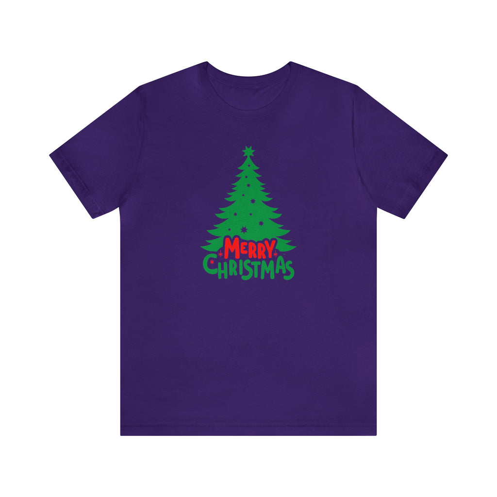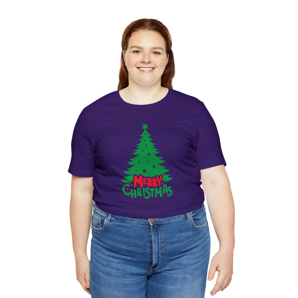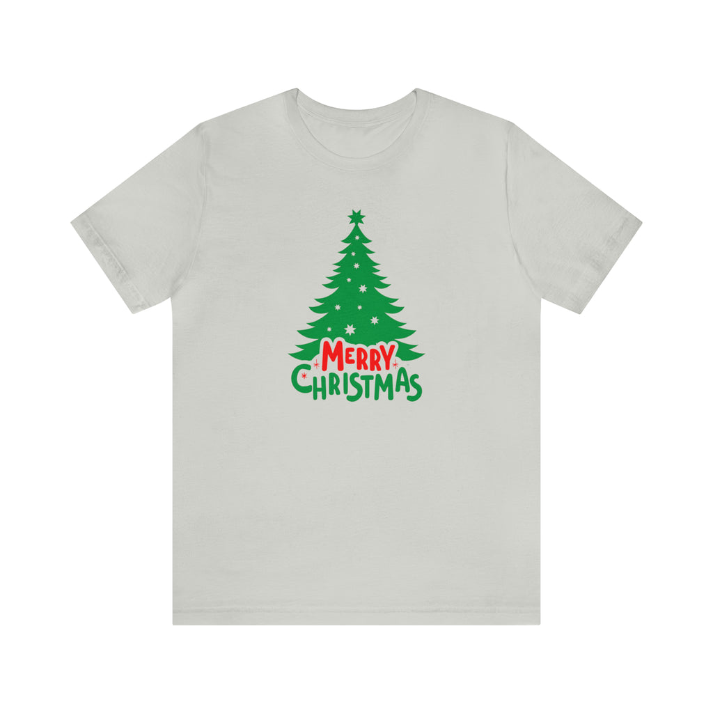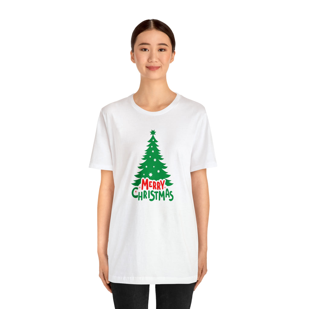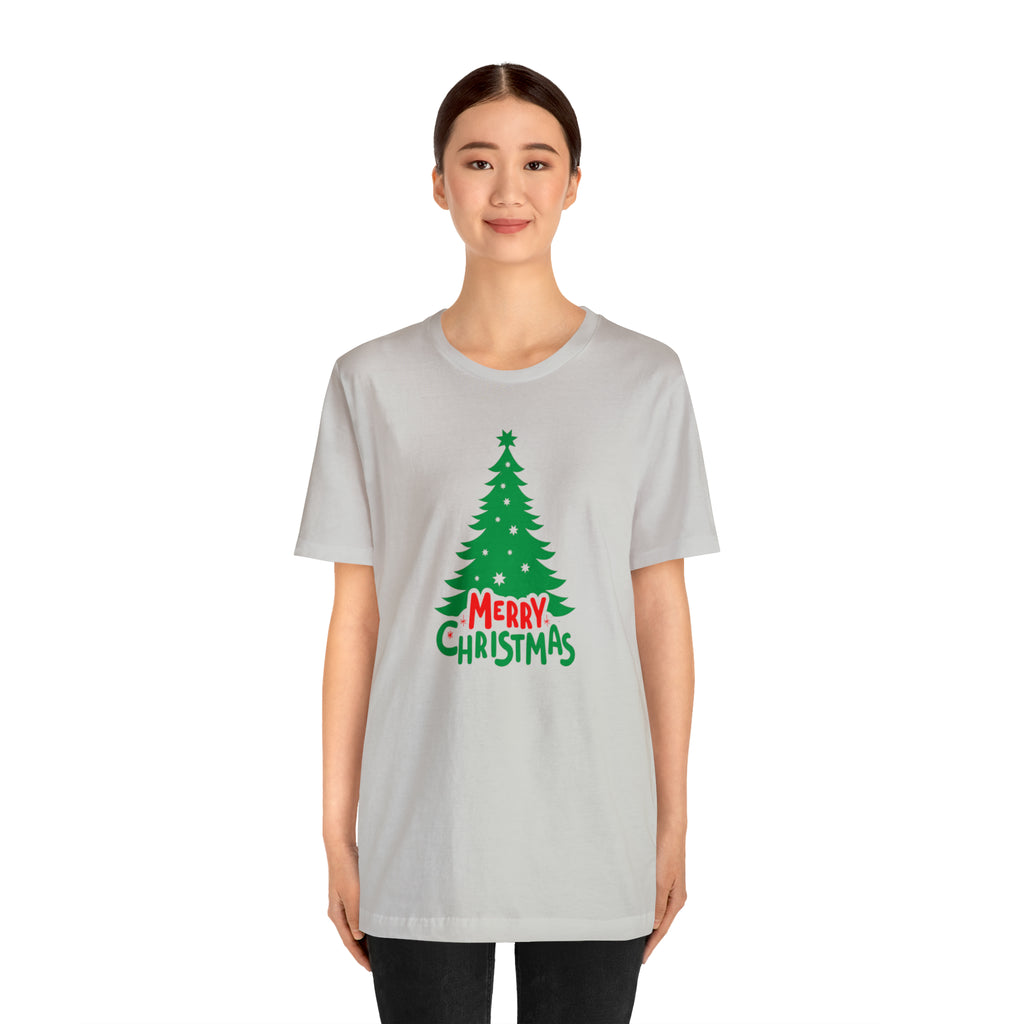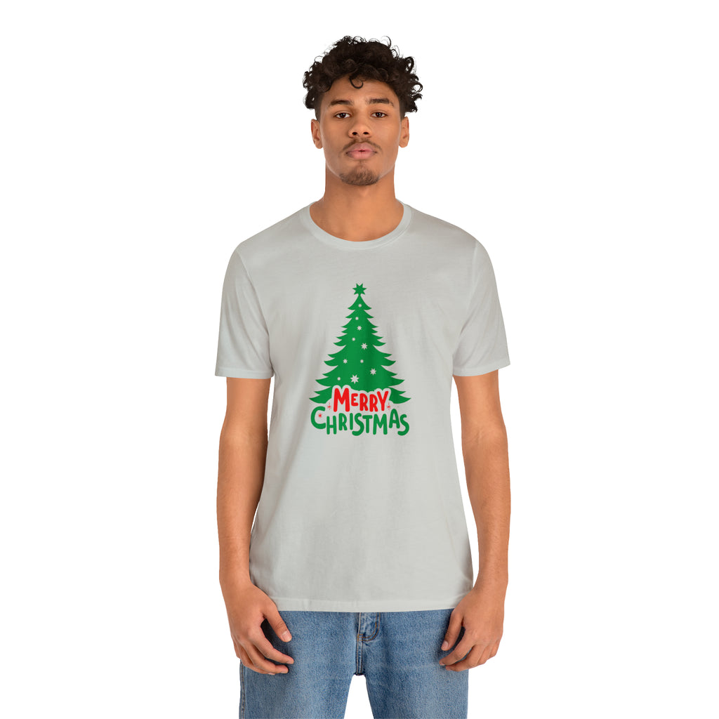 Merry Christmas Green Tree T-Shirt | Festive XMas Tee | Bella Canvas 3001 Unisex | Happy Holidays Short Sleeve T-shirt