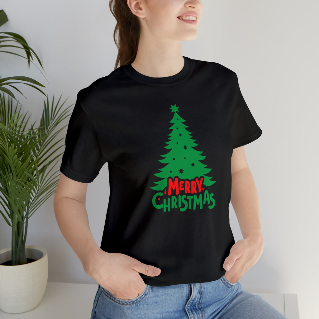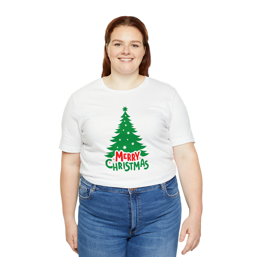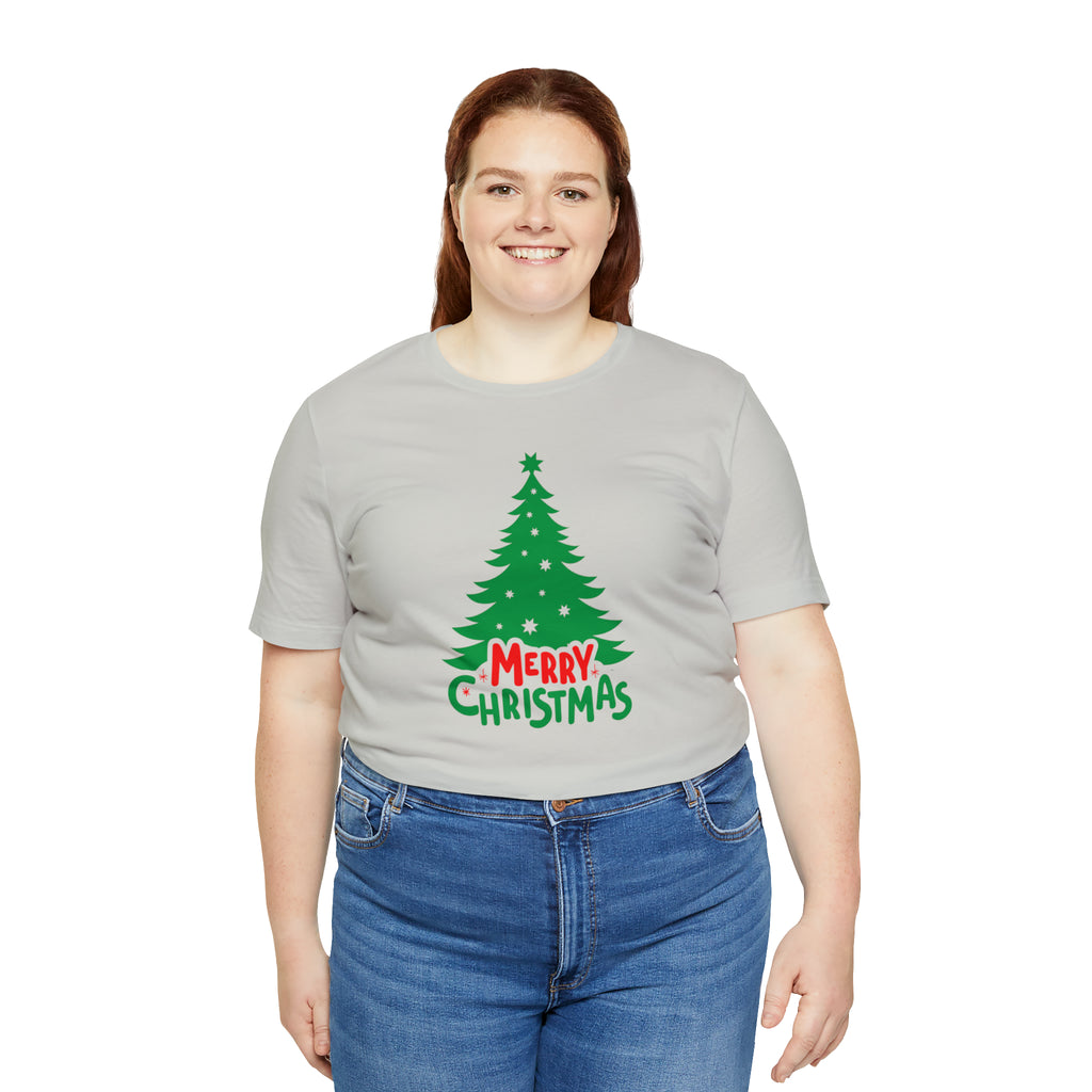 Add a touch of Christmas charm to your holiday wardrobe! This Merry Christmas Green Tree Tee can be effortlessly paired with jeans, skirts, or layered with a cozy cardigan for a chic look. Express your love for the season with this versatile and stylish tee.