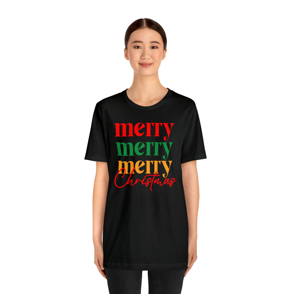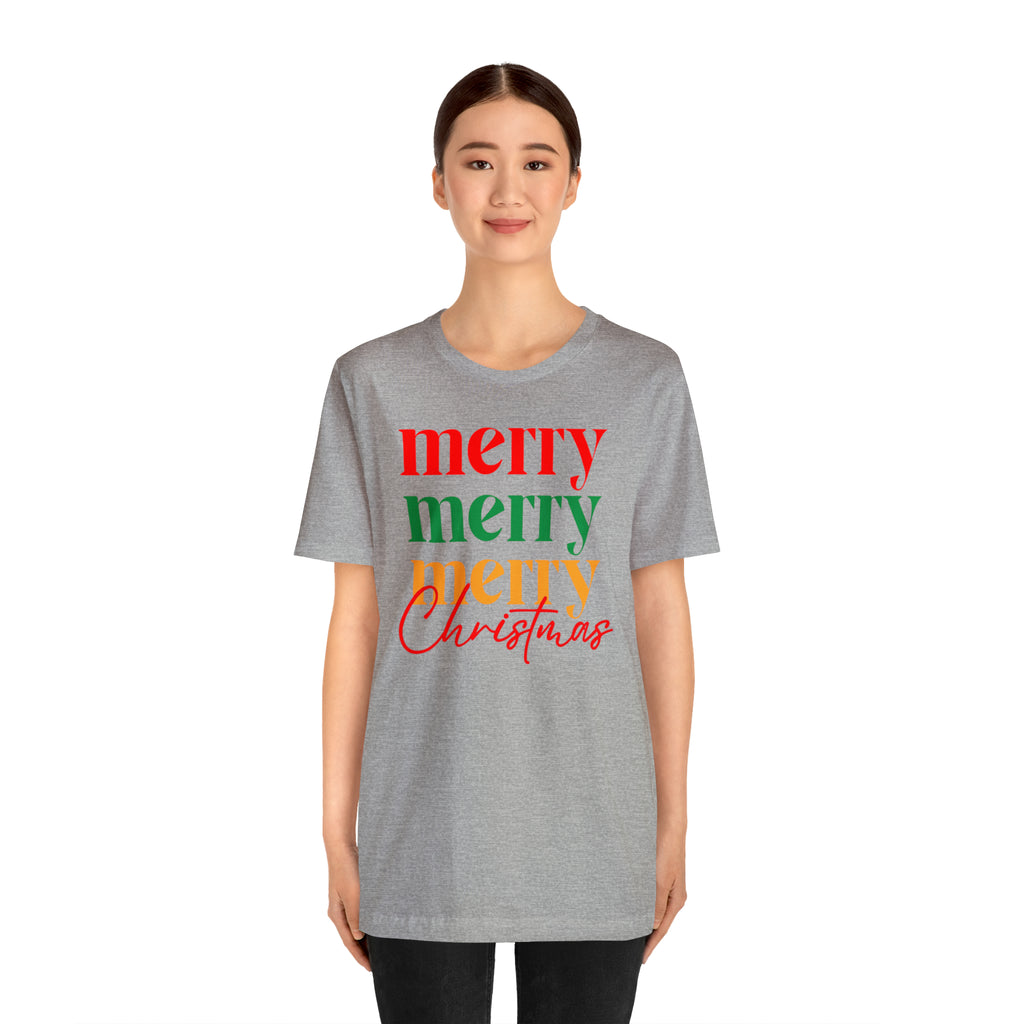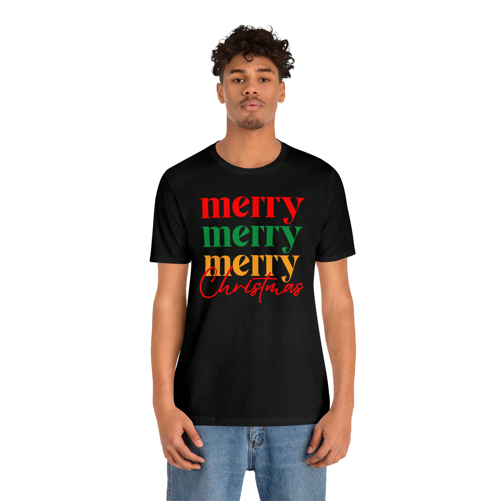 Merry Merry Merry Christmas T-Shirt | Festive XMas Tee | Bella Canvas 3001 Unisex | Happy Holidays Short Sleeve Tshirt