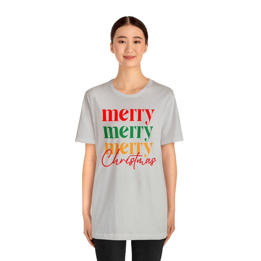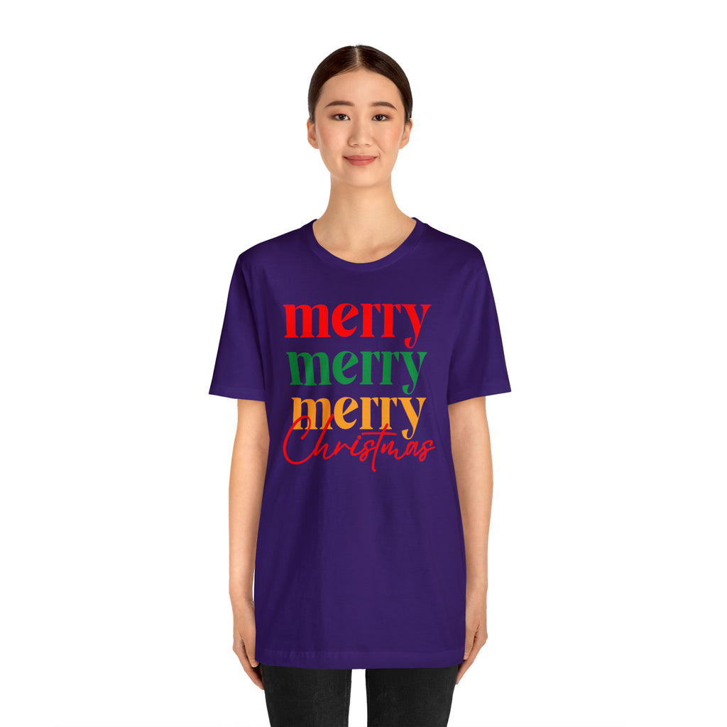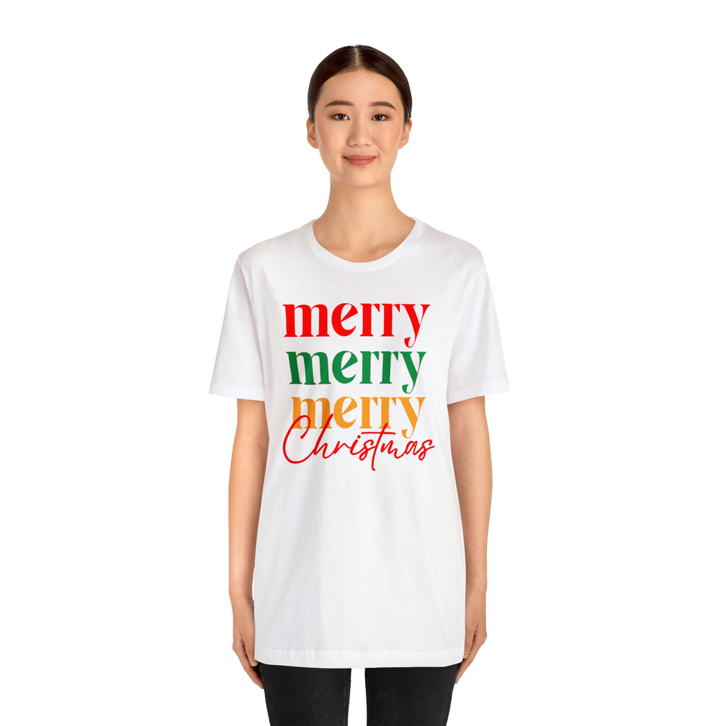 Merry Merry Merry Christmas T-Shirt | Festive XMas Tee | Bella Canvas 3001 Unisex | Happy Holidays Short Sleeve Tshirt