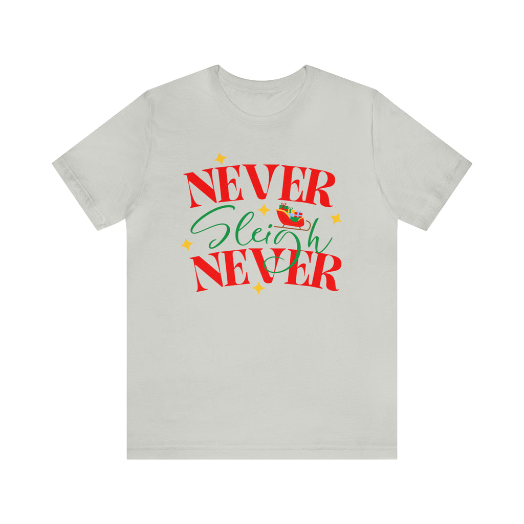 Never Sleigh Never Merry Christmas T-Shirt | Funny XMas Tee | Bella Canvas 3001 Unisex | Happy Holidays Short Sleeve Tshirt