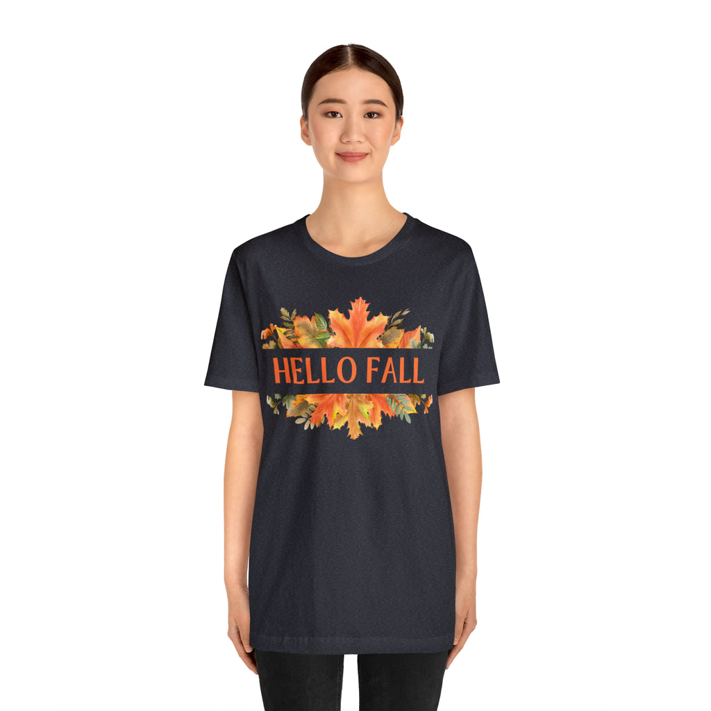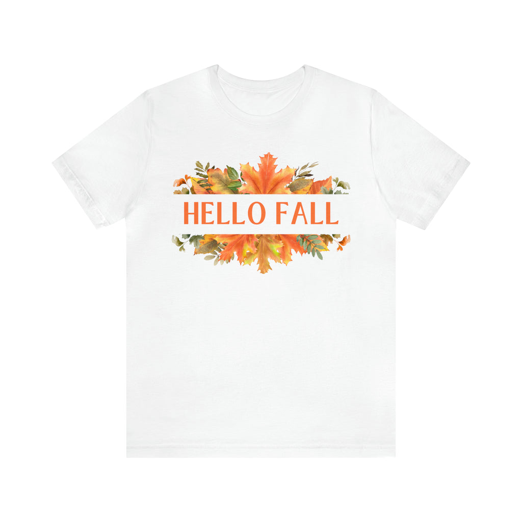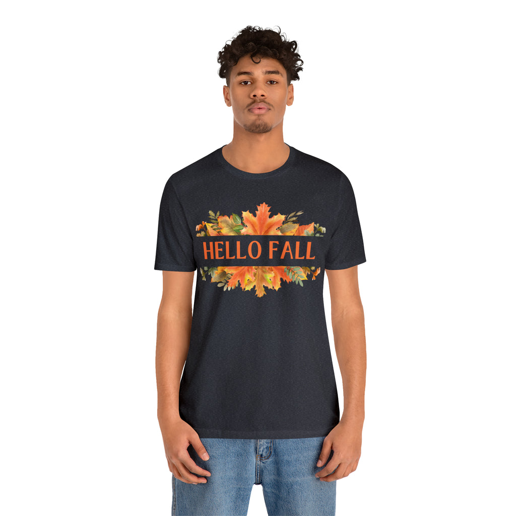 Orange Leaves Hello Fall T-Shirt | Fall Tee | Bella Canvas 3001 Unisex | Thanksgiving Season Short Sleeve Tshirt