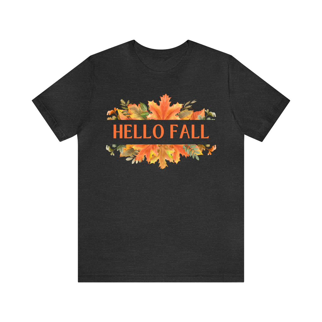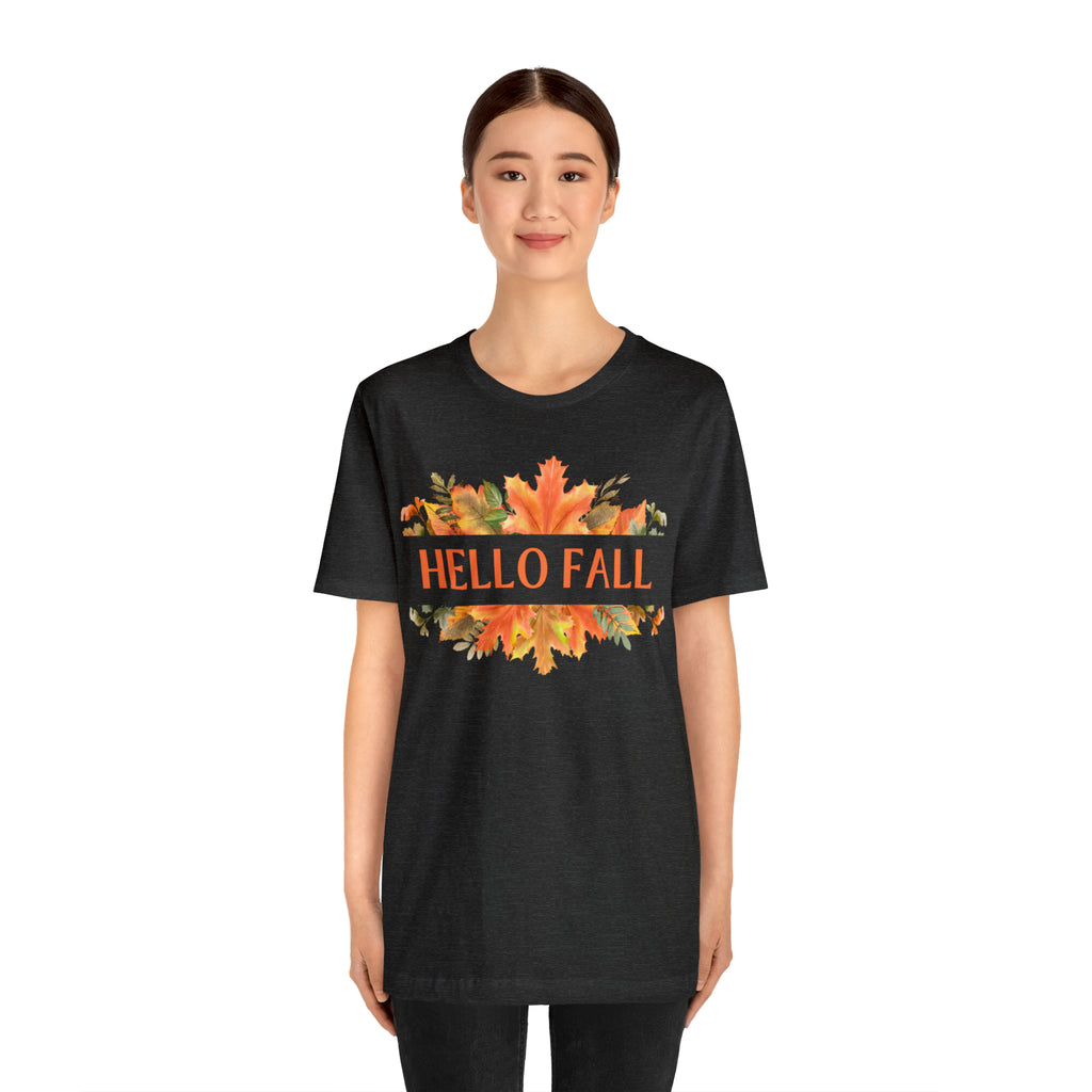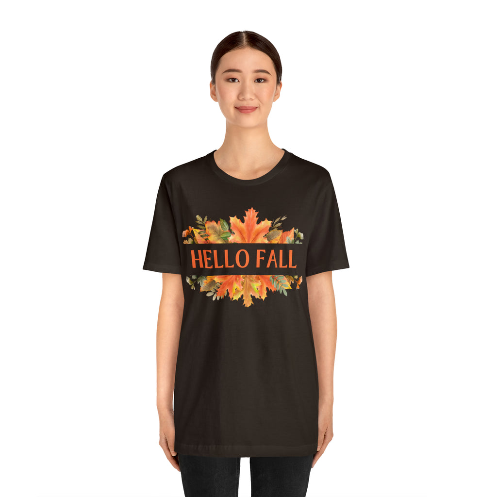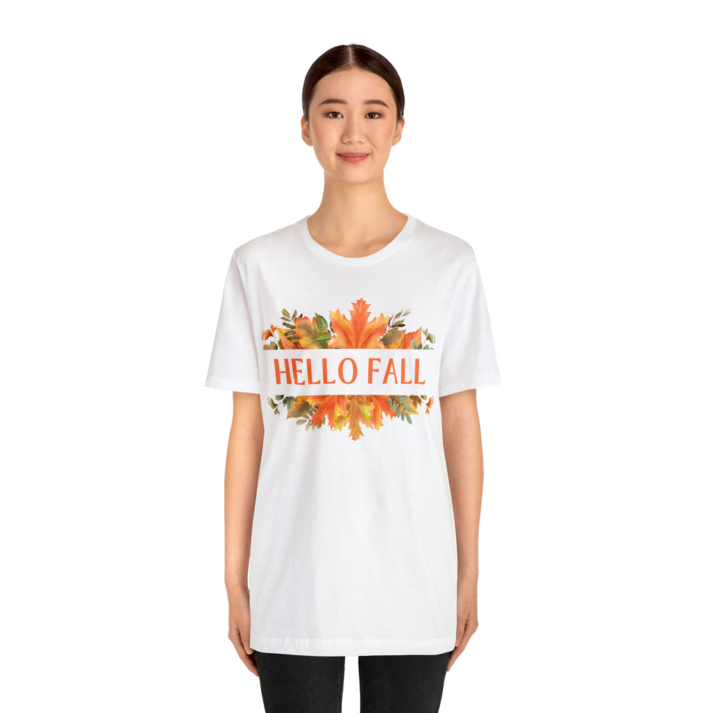 Orange Leaves Hello Fall T-Shirt | Fall Tee | Bella Canvas 3001 Unisex | Thanksgiving Season Short Sleeve Tshirt