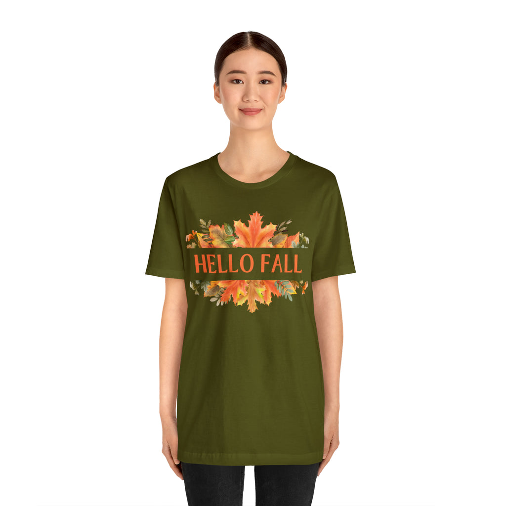 Order now and wear the essence of fall with pride and joy. Add this charming and cozy T-shirt to your cart and let the world know that you're ready to say "Hello Fall" in style!