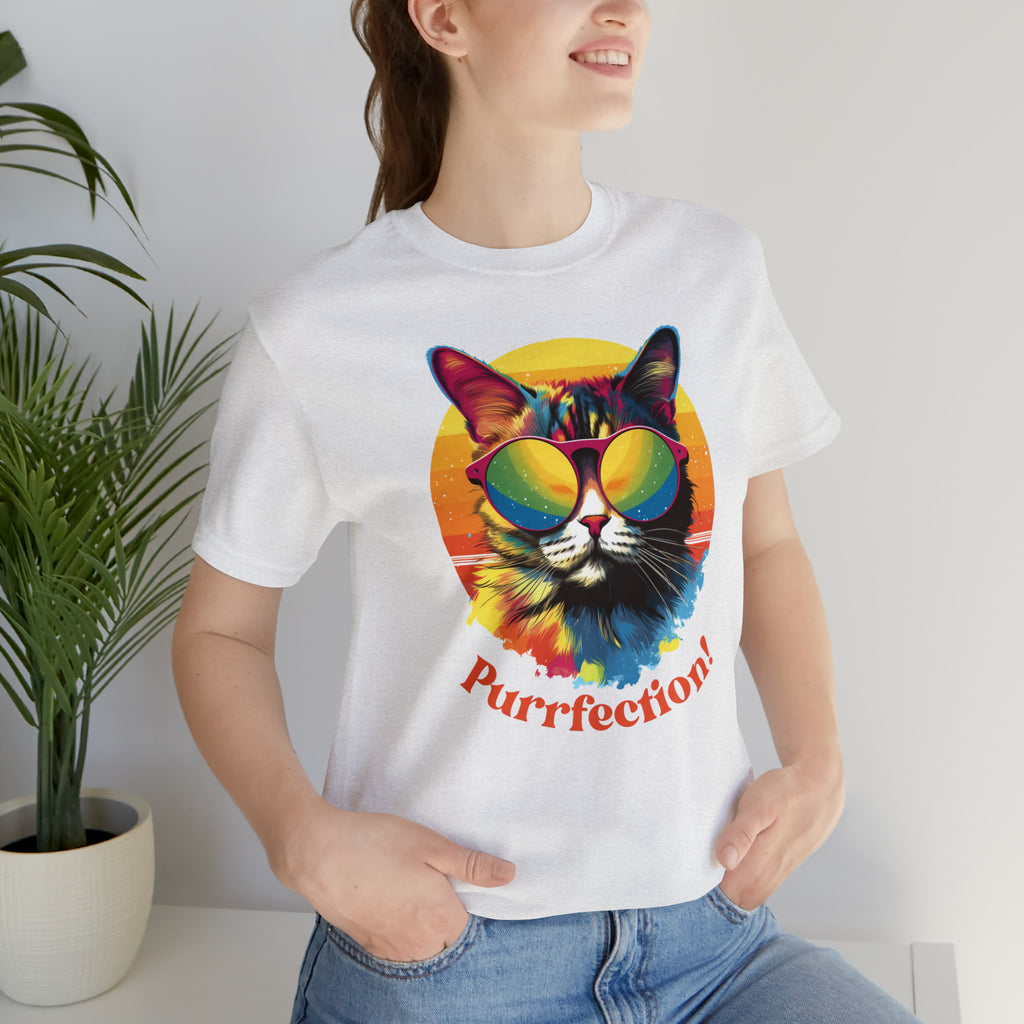 Purrfect Artistic Cat T-Shirt | Colorful Cat Tee | Bella Canvas 3001 Unisex | Short Sleeve Tshirt