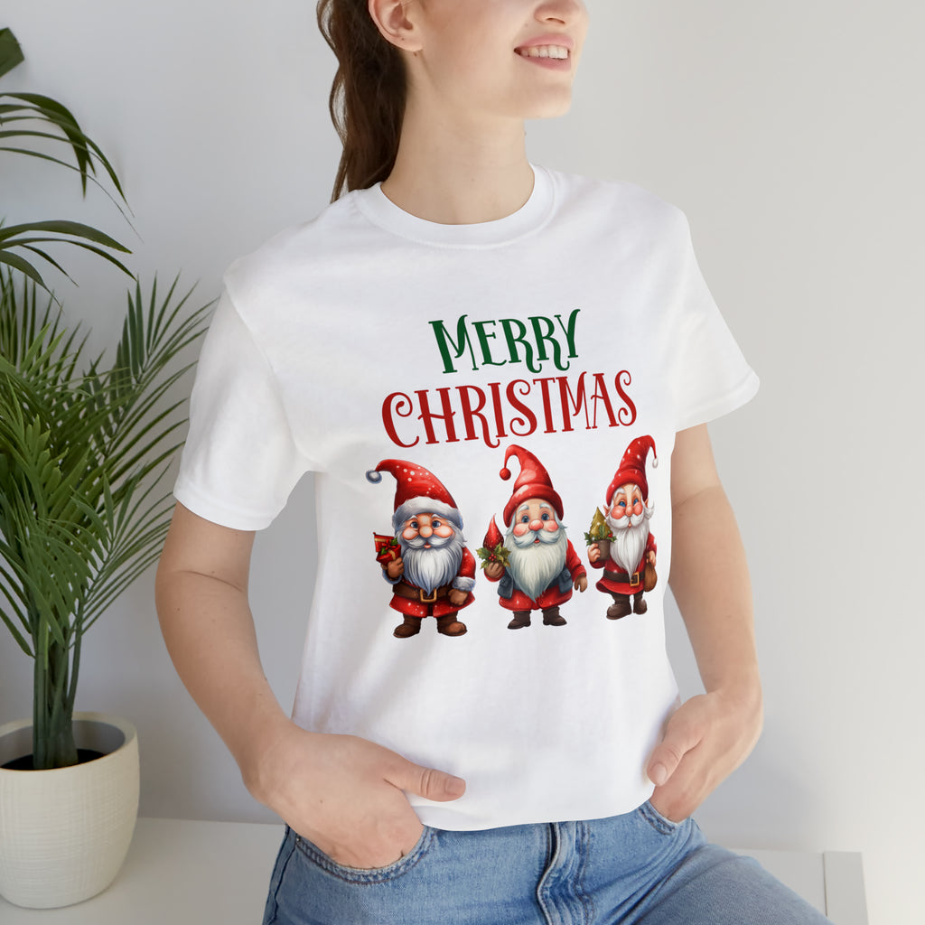 We take pride in providing our customers with the best, and this Three Gnomes Merry Christmas T-Shirt is no exception. Crafted from high-quality Bella Canvas 3001 Unisex material, it ensures a comfortable and flattering fit for everyone. The short sleeves add a touch of casual appeal, perfect for immersing yourself in the holiday spirit.