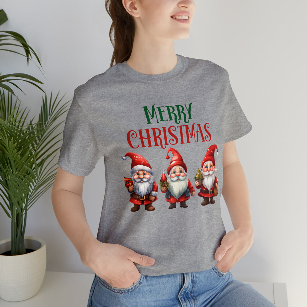 Three Gnomes Merry Christmas T-Shirt | Festive XMas Tee | Bella Canvas 3001 Unisex | Happy Holidays Short Sleeve Tshirt