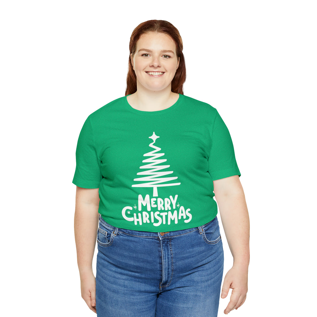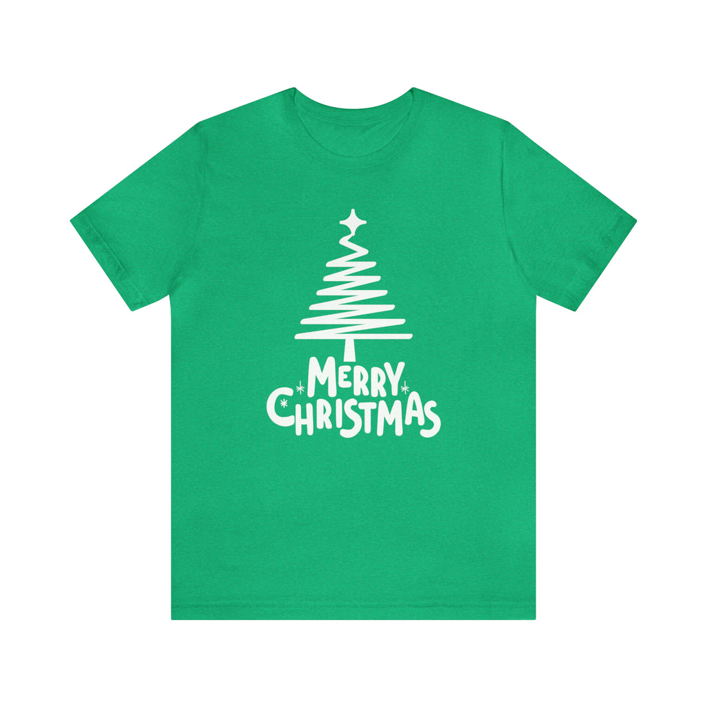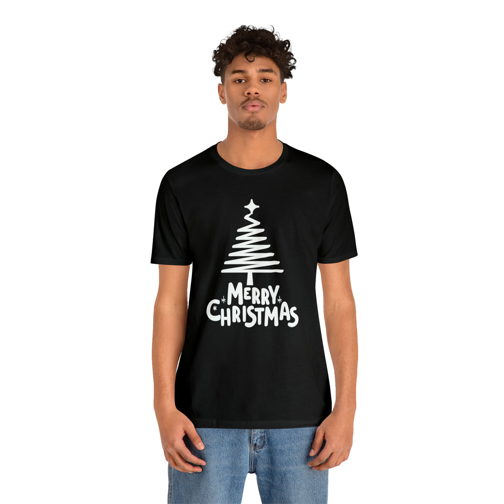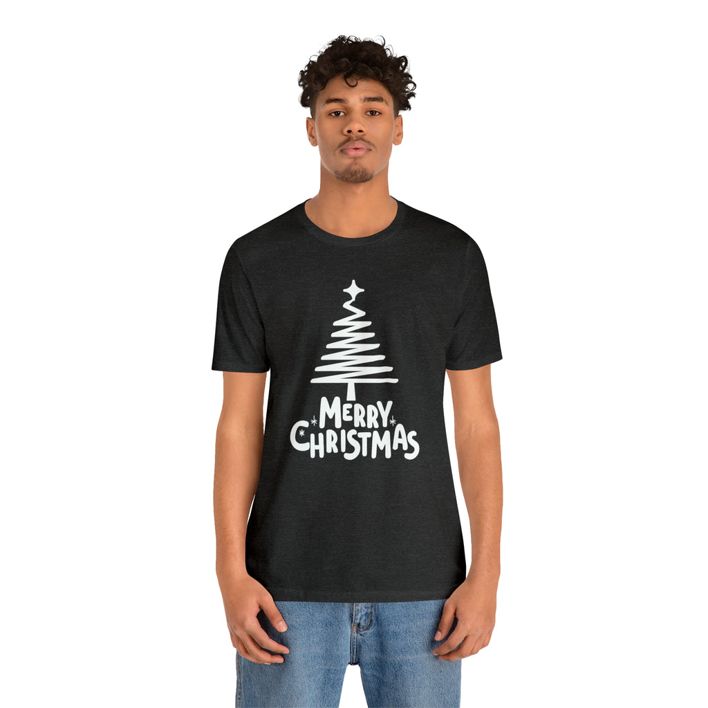 White Merry Christmas Tree T-Shirt | Christmas Holiday Tee | Bella Canvas 3001Unisex | Happy Holidays Party Short Sleeve Tshirt