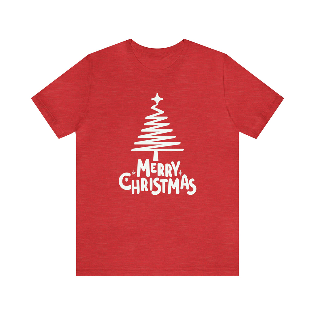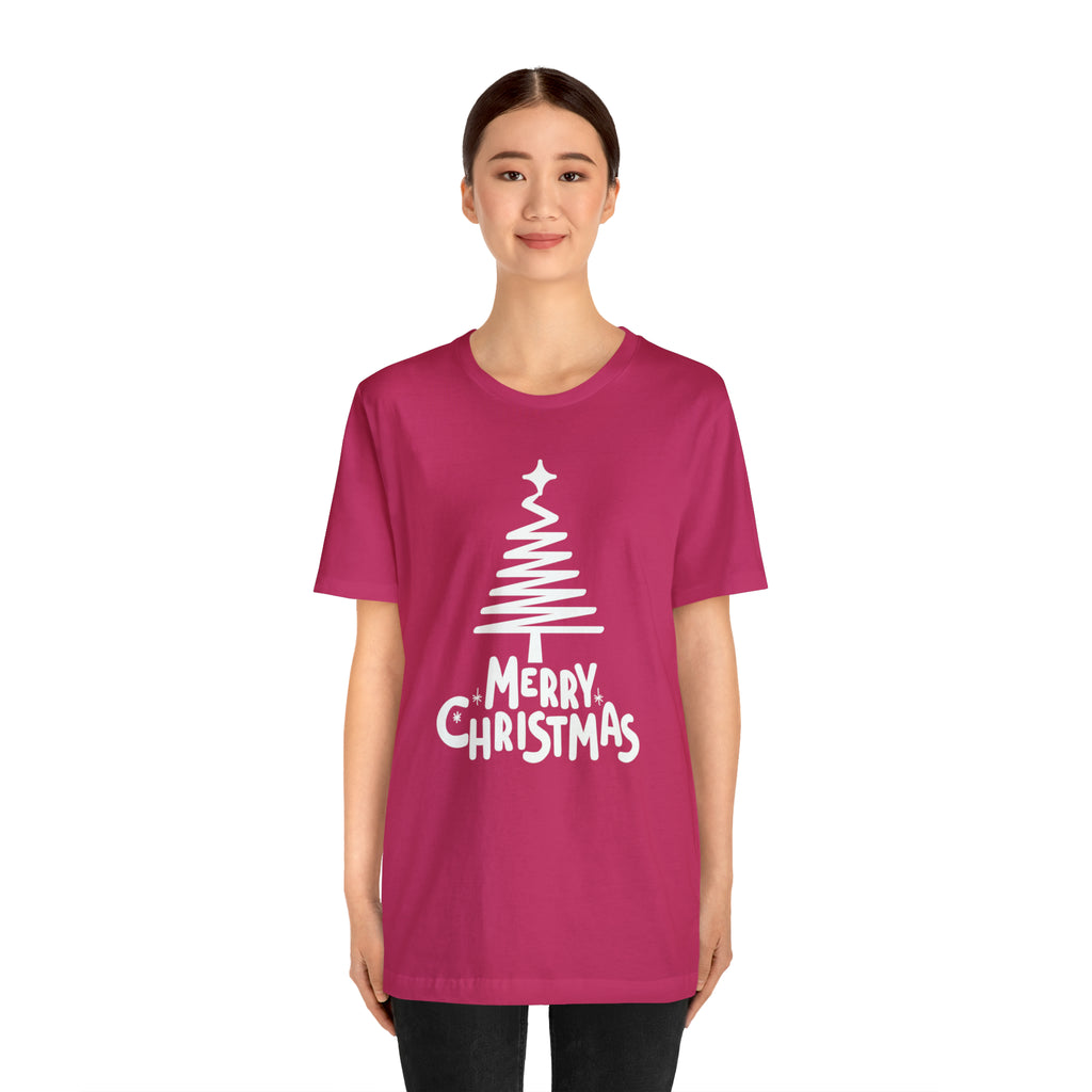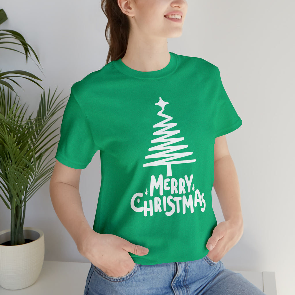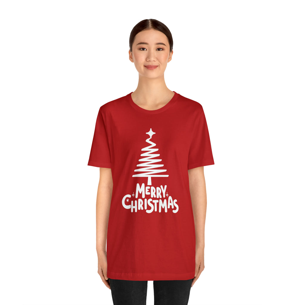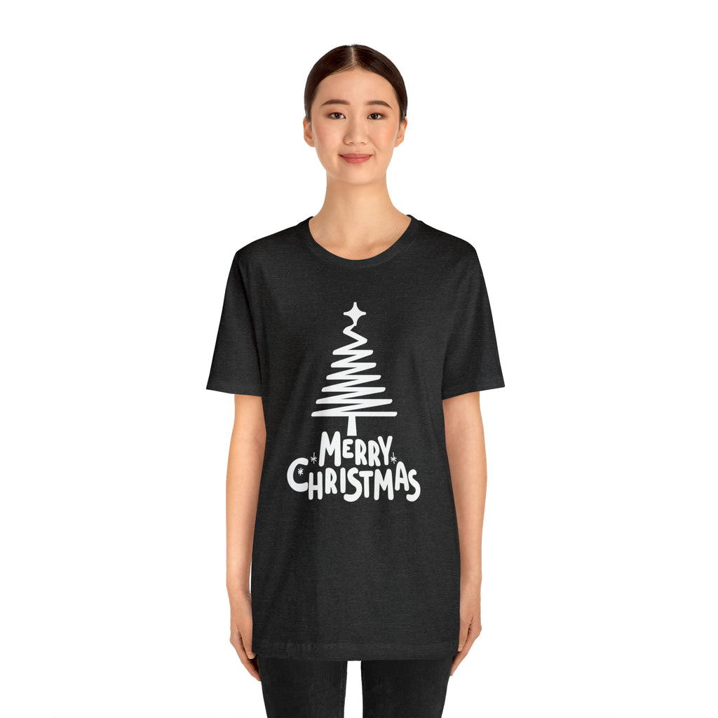 White Merry Christmas Tree T-Shirt | Christmas Holiday Tee | Bella Canvas 3001Unisex | Happy Holidays Party Short Sleeve Tshirt