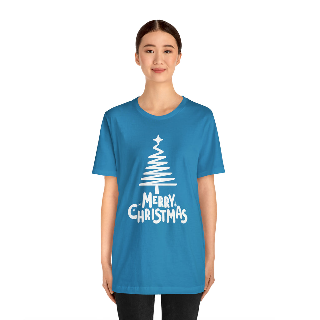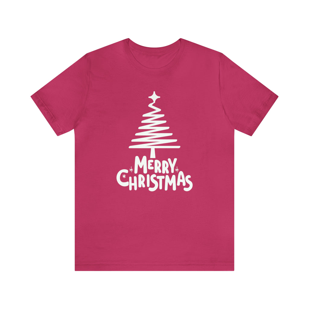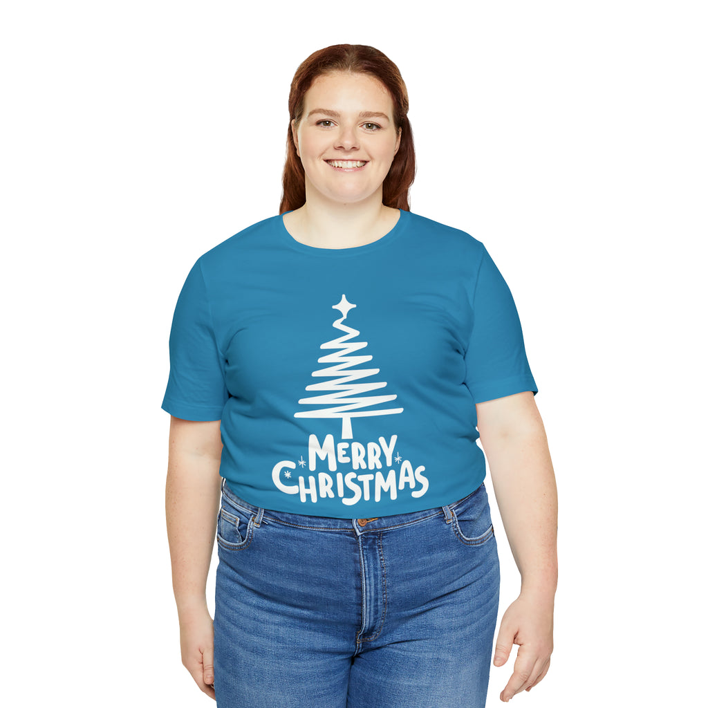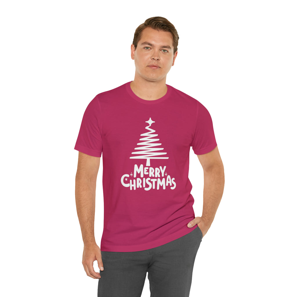 White Merry Christmas Tree T-Shirt | Christmas Holiday Tee | Bella Canvas 3001Unisex | Happy Holidays Party Short Sleeve Tshirt
