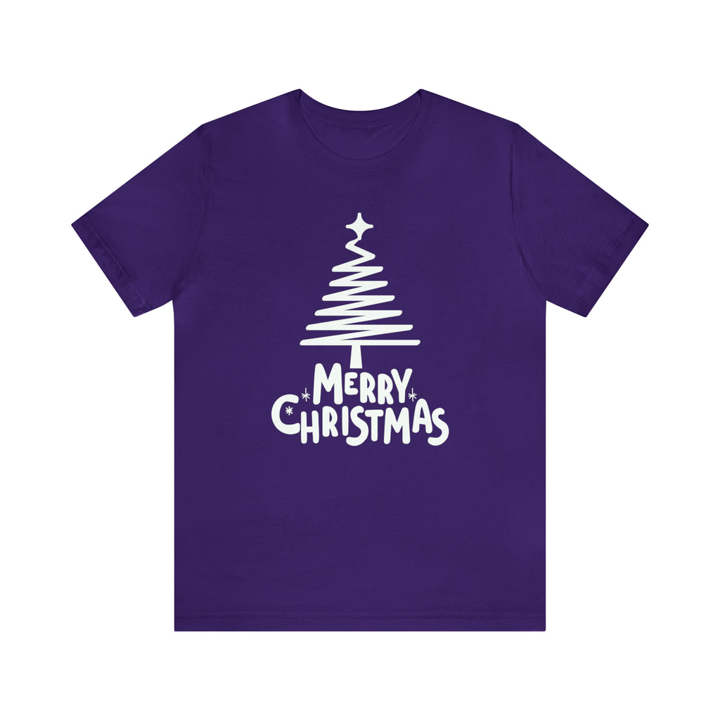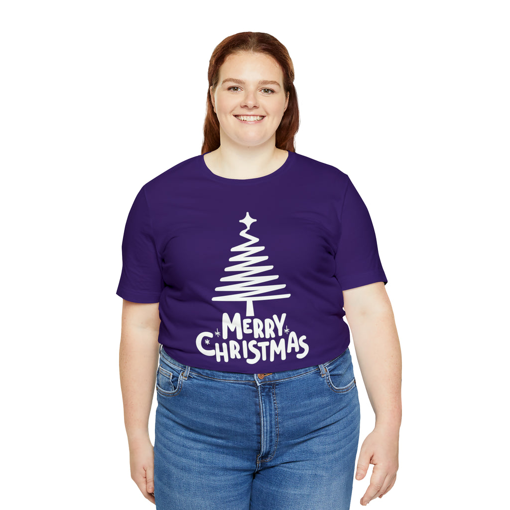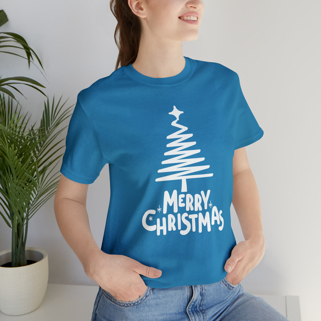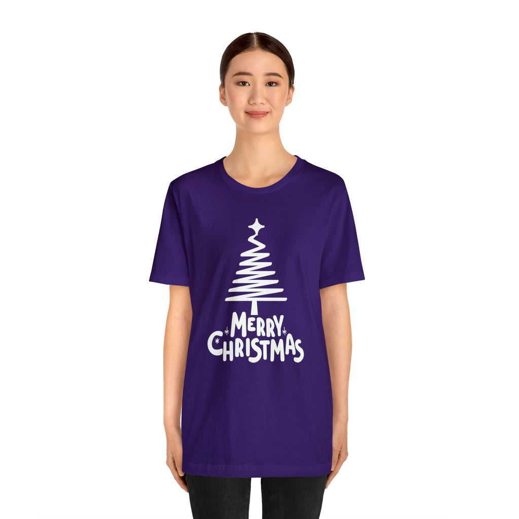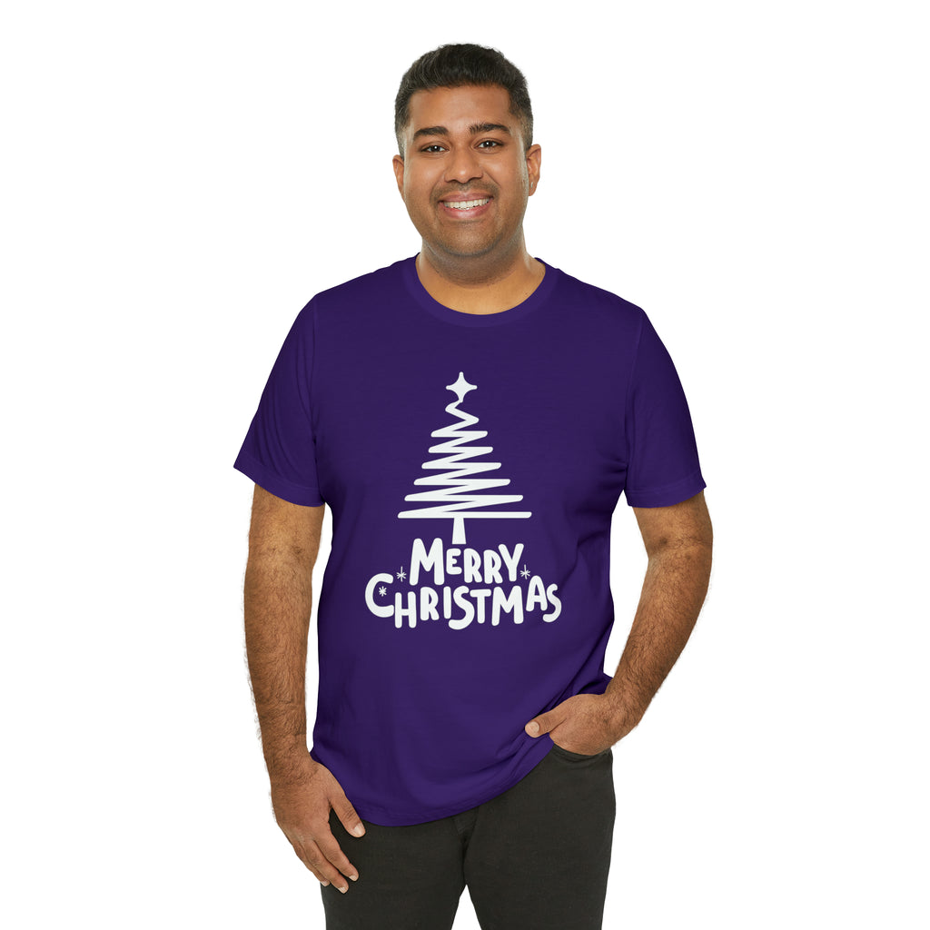 White Merry Christmas Tree T-Shirt | Christmas Holiday Tee | Bella Canvas 3001Unisex | Happy Holidays Party Short Sleeve Tshirt