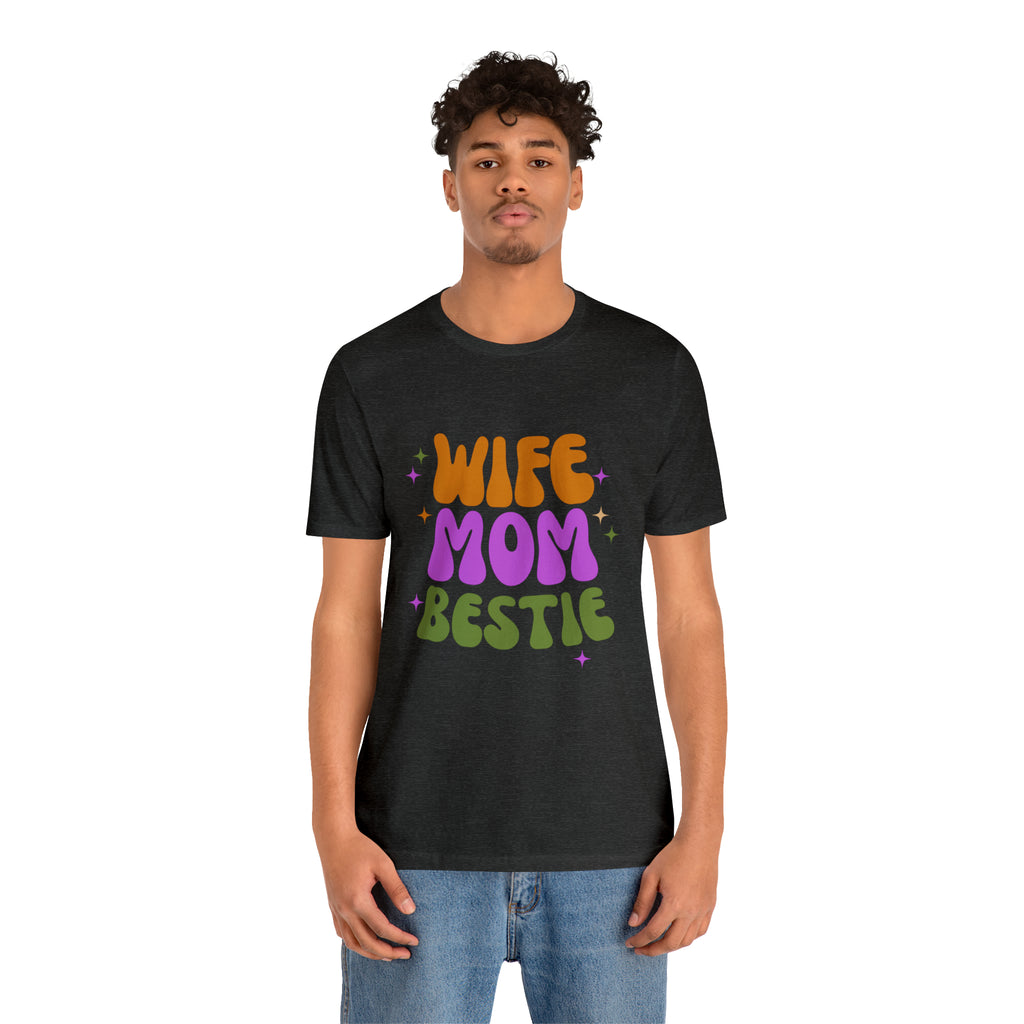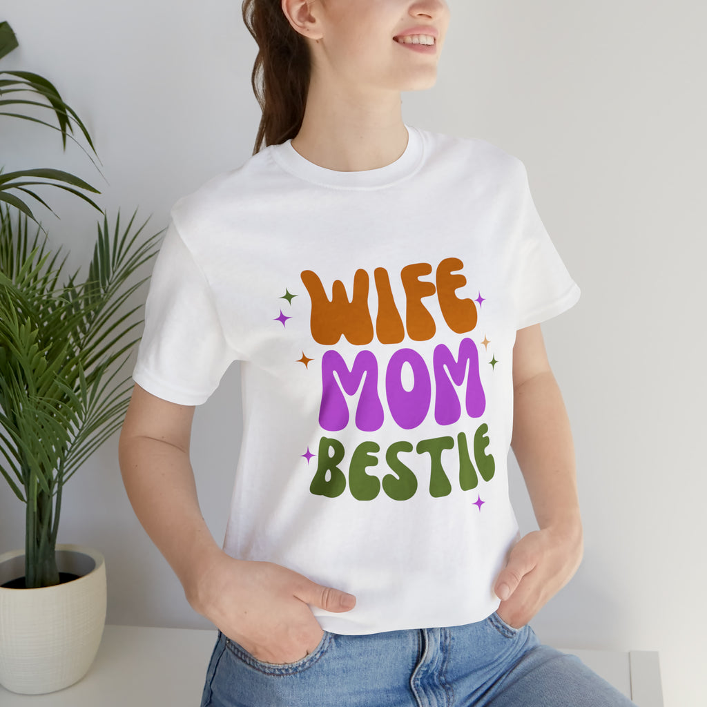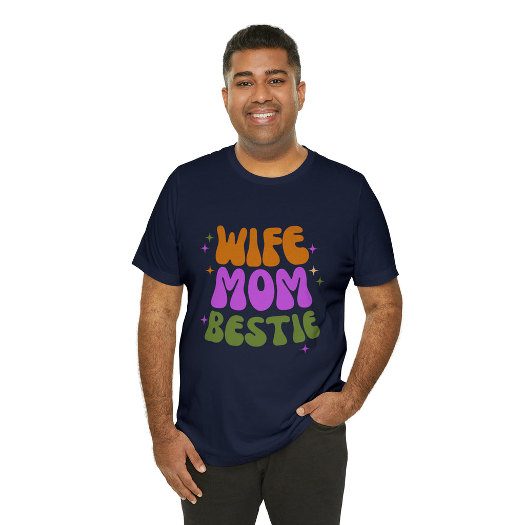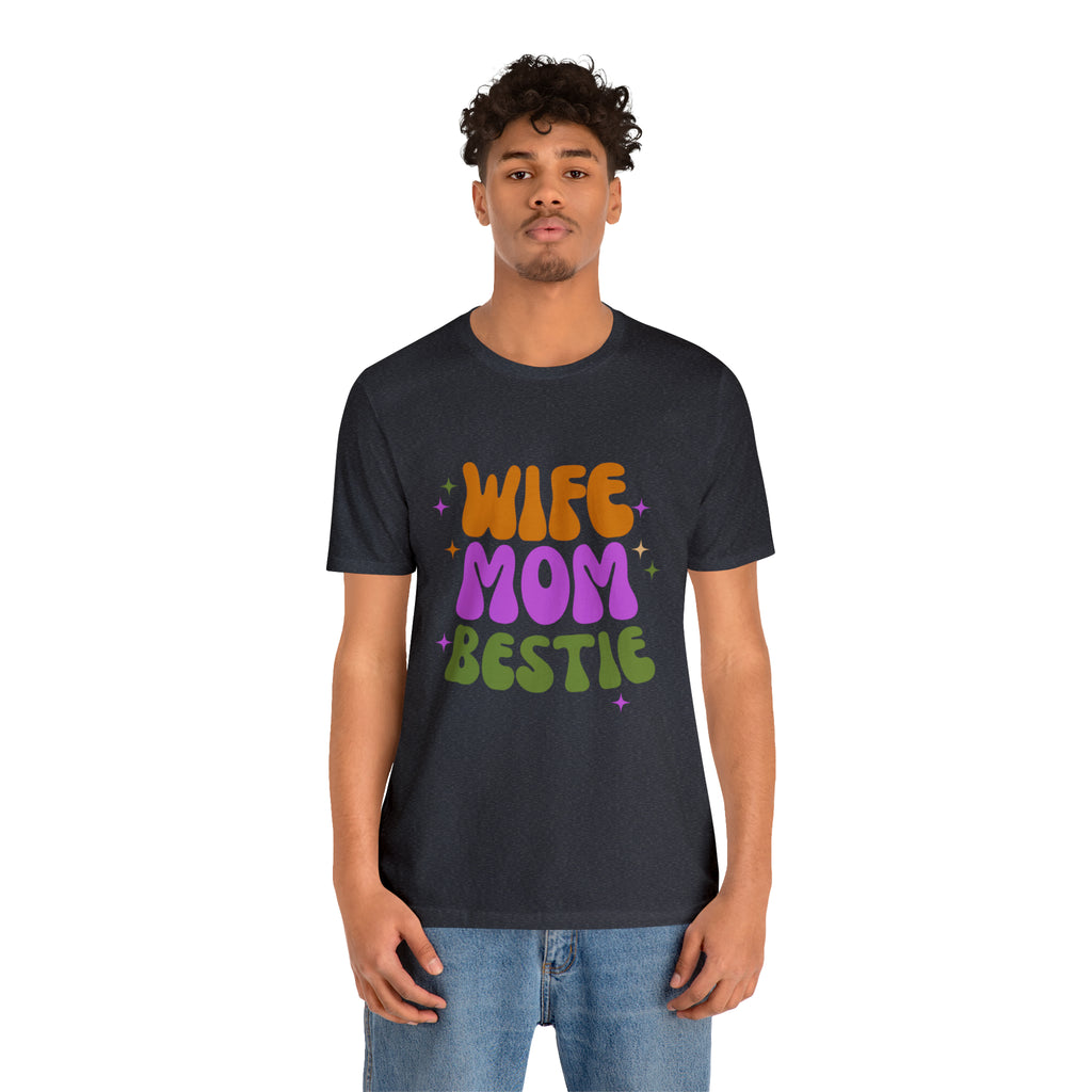 Embrace the essence of these beautiful relationships with this versatile and touching tee. Add it to your cart now and wear it proudly, carrying the love and admiration for your wife, mom, and bestie wherever you go.