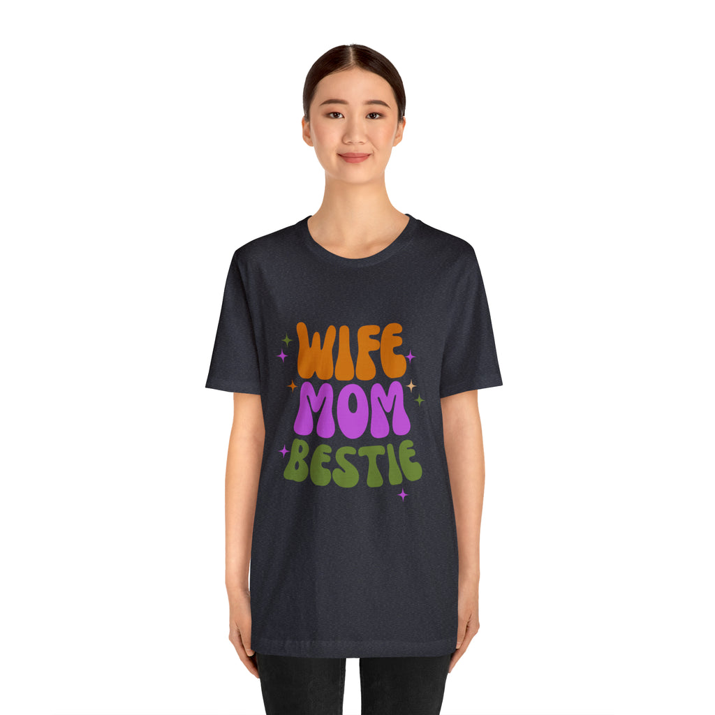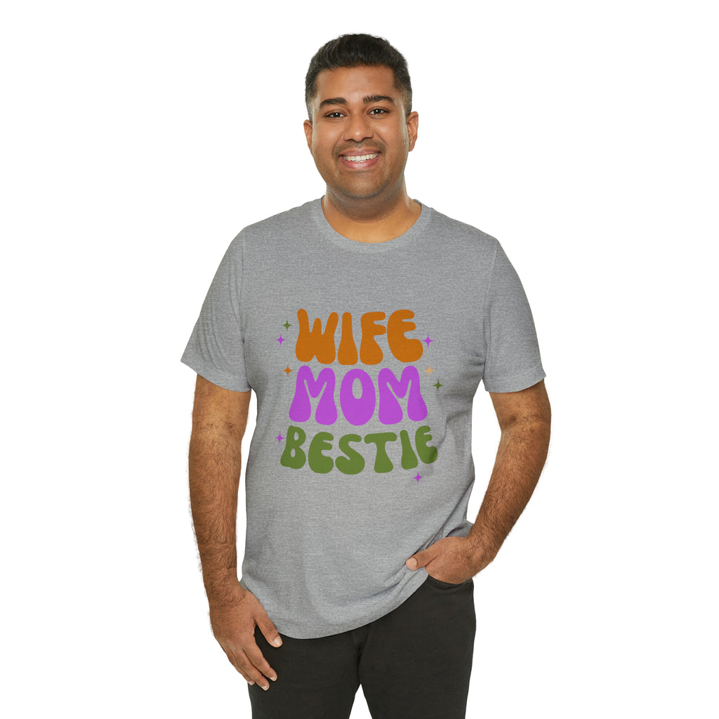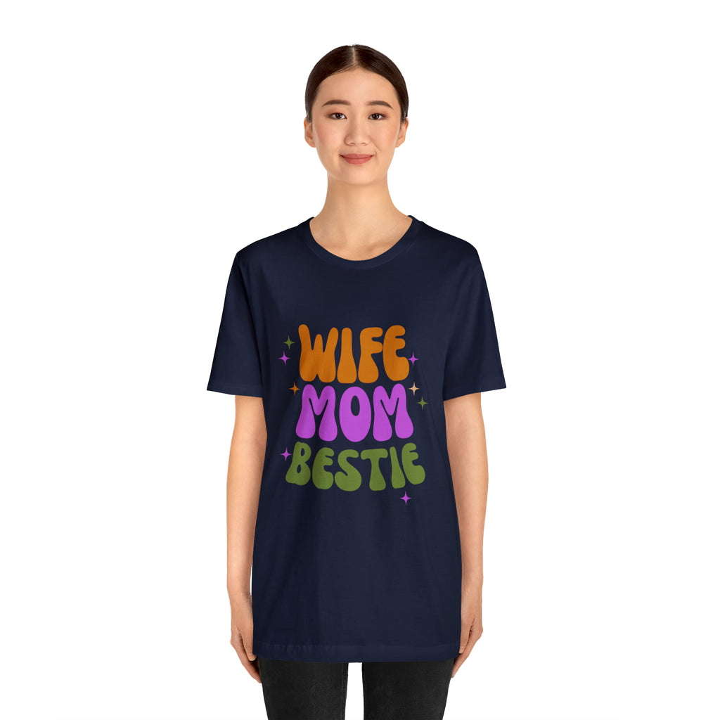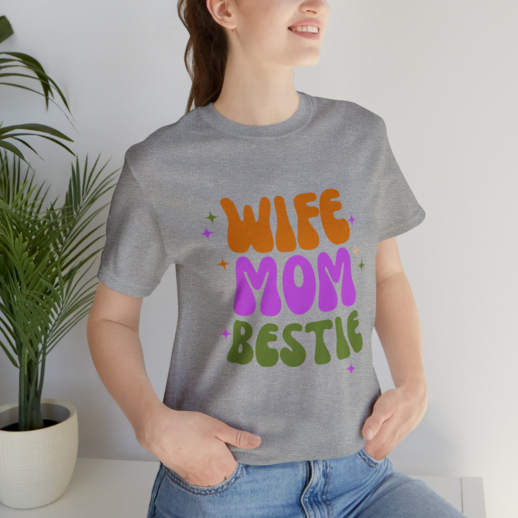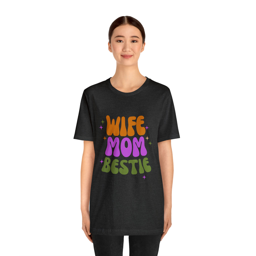 Embrace the essence of these beautiful relationships with this versatile and touching tee. Add it to your cart now and wear it proudly, carrying the love and admiration for your wife, mom, and bestie wherever you go.