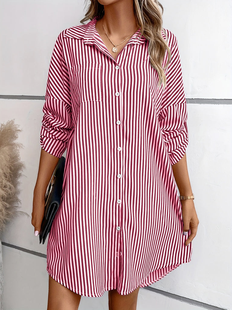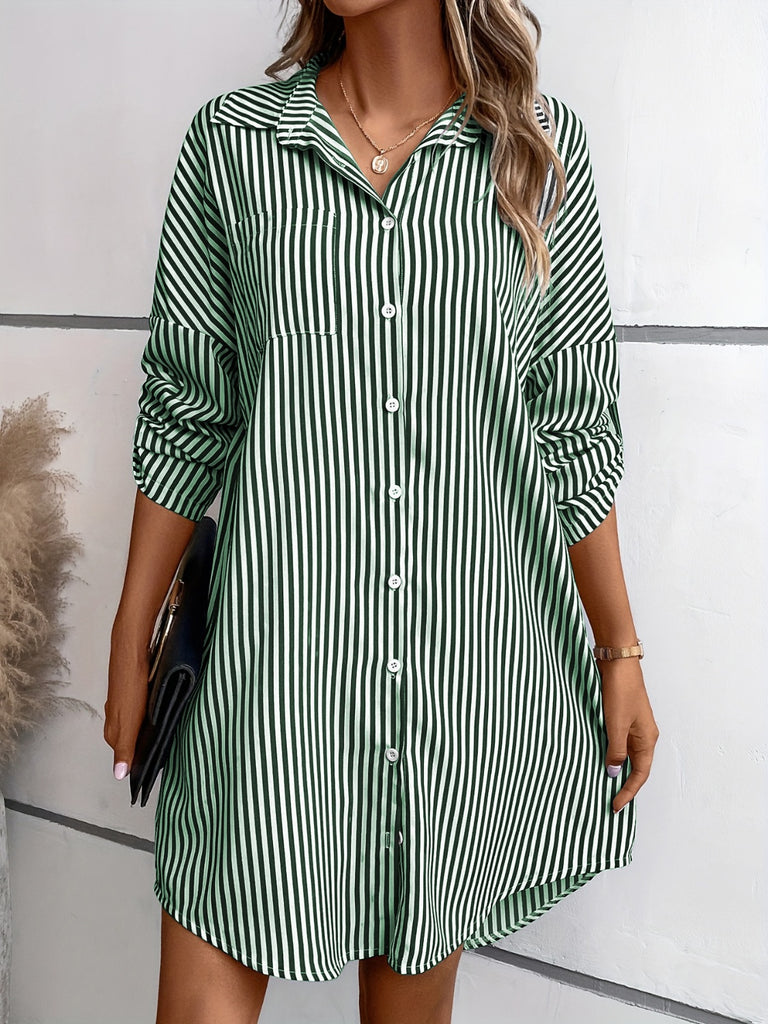 Striped Button Up Long Sleeve Mini Shirt Dress